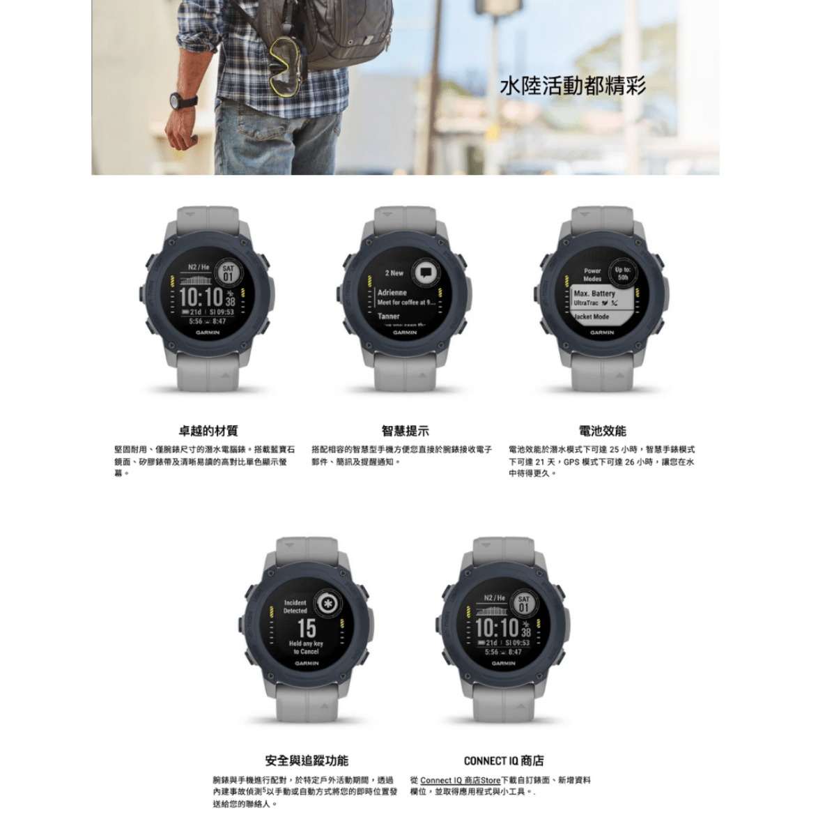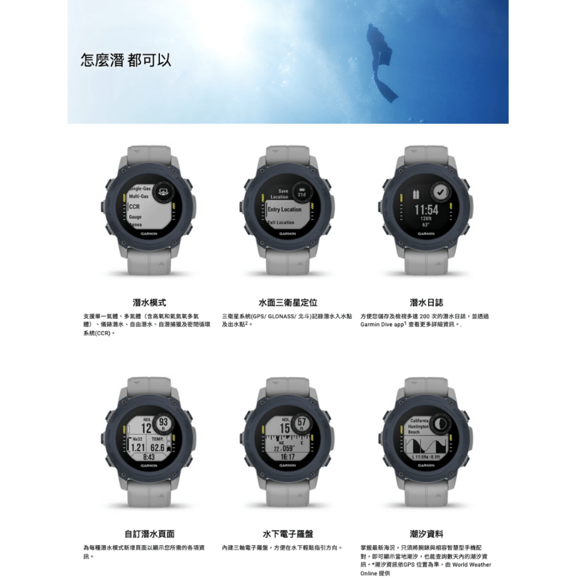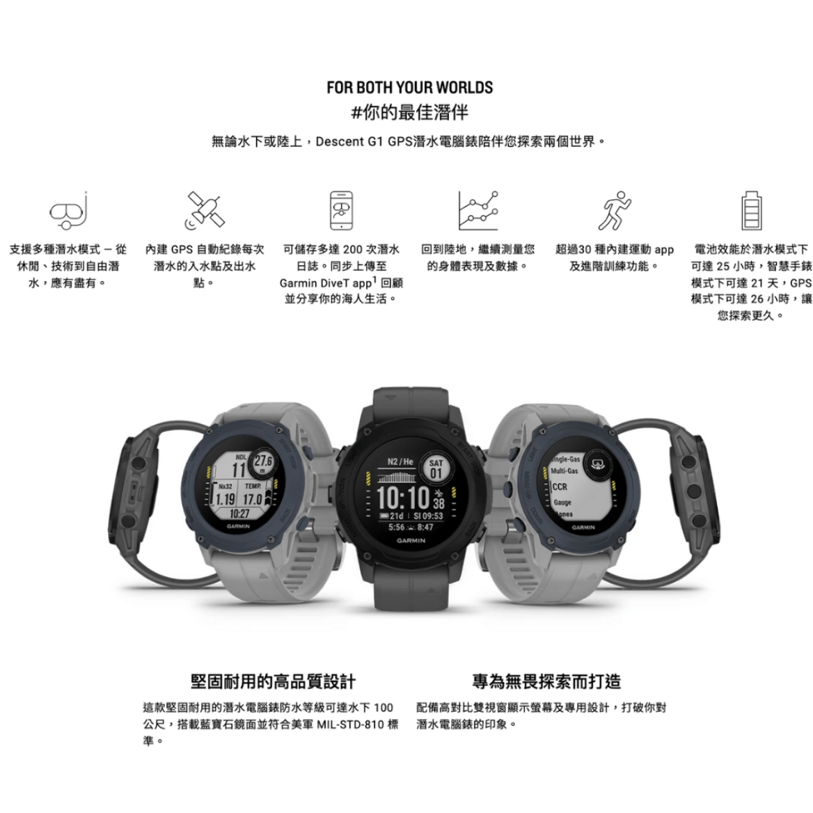 Garmin Descent G1 Solar 太陽能版本多功能運動及潛水電腦錶 (中文版本 - 太陽能)