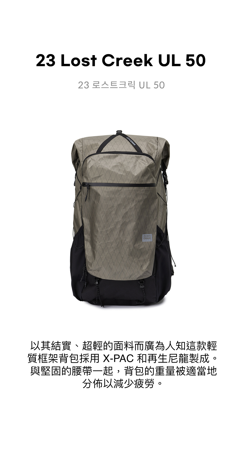 Zerogram 23 Lost Creek UL 50 X-Pac Backpack 輕量戶外背包