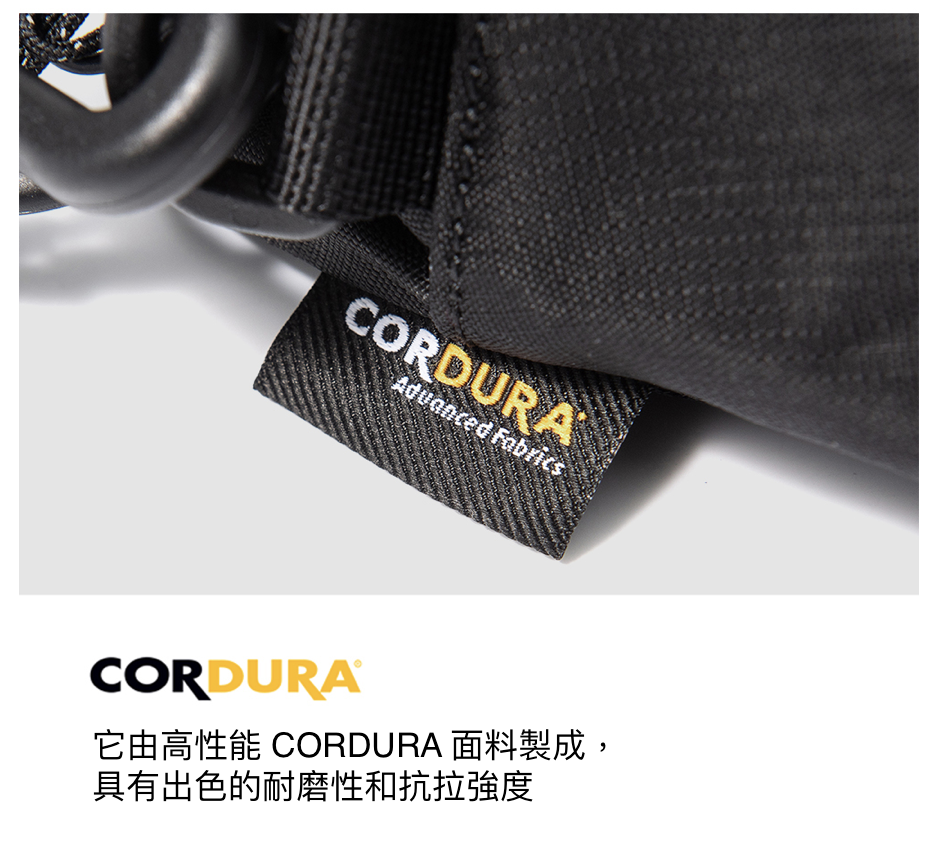 • Cordura 尼龍,耐磨,耐用