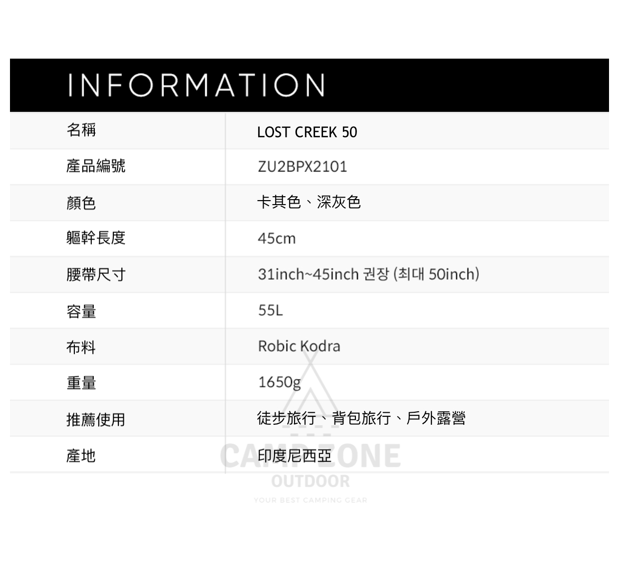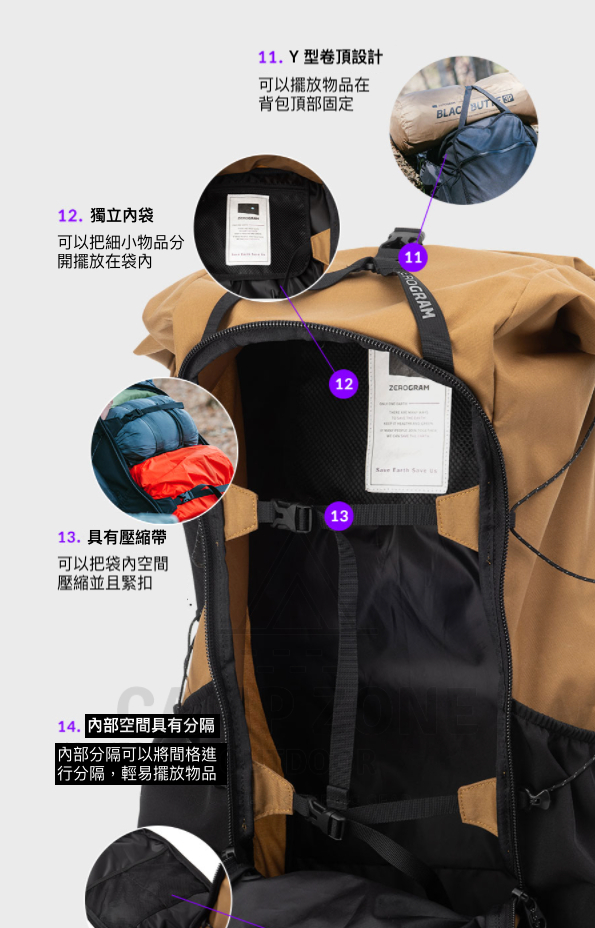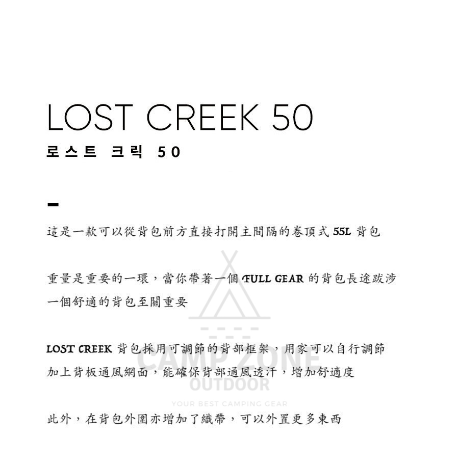 韓國 Zerogram Lost Creek 50 Backpack 55L 戶外背包