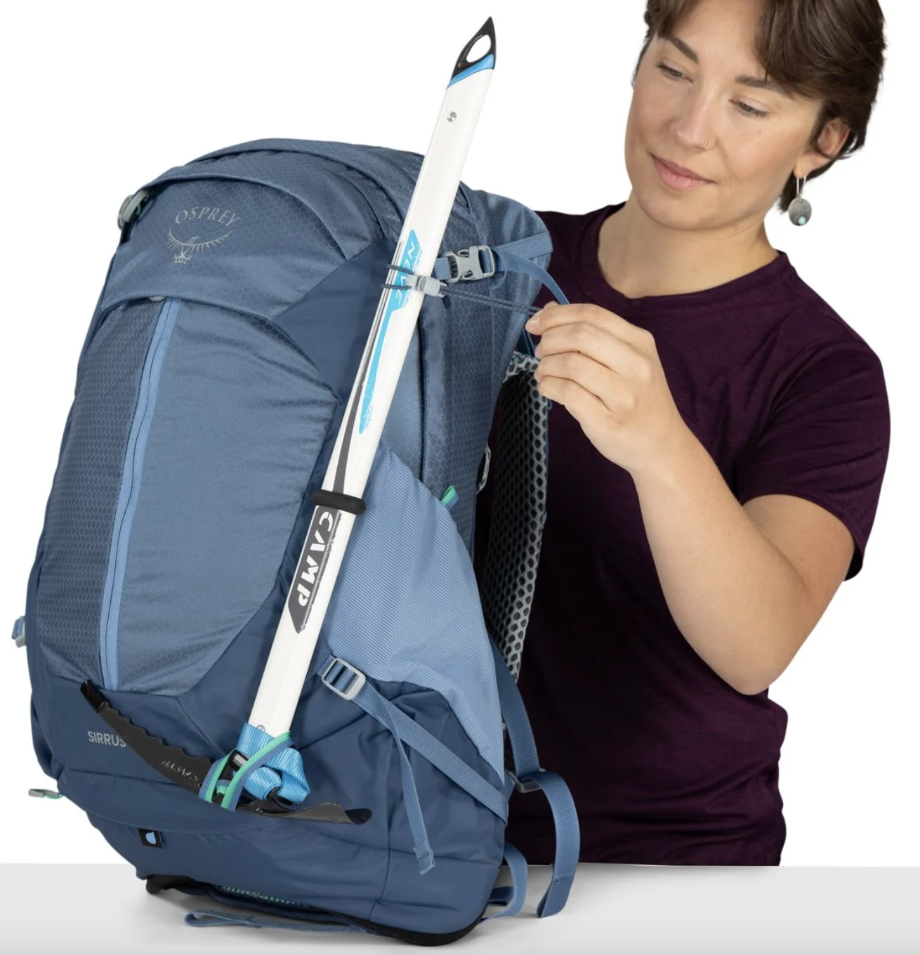 • Stow-on-the-Go 登山杖固定裝置、單冰斧環與彈力繩設計,提升戶外活動便利性